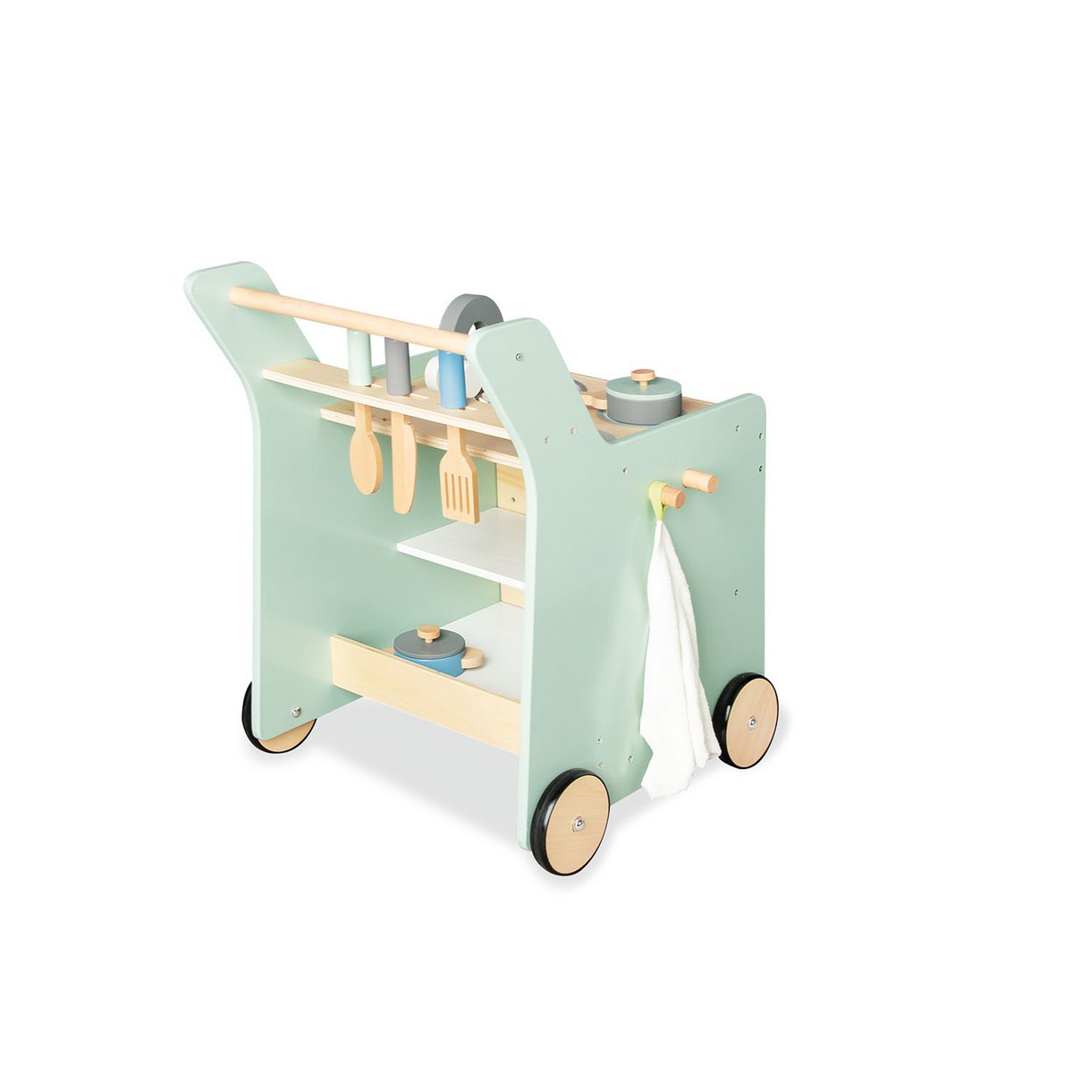 Keuken 'Kalle', Pastel Green, 6 stuks: met keukentrolley, 2 potten en 3 stukken kookgerei. Rubberen houten wielen, gedeeltelijk vast: limoen en MDF, helder en kleurrijk gelakt, afmetingen w 45 x d 48 x h 57 cm, werktop W 37 x d 30 cmthanks naar de werktophoogte van 40 cm, kleine sterrenkoks kunnen gemakkelijk eieren en wasgerechten bakken. De rubberen houten wielen zorgen ervoor dat de keuken rustig naar elke kookruimte kan worden verplaatst en zonder de vloer wastafel, oven en kookgerei te beschadigen, creëren een realistische keukensfeer. De roterende knoppen met klikkende geluid voltooien de simulatie van echte kooksituaties. De speelkeuken wordt aanbevolen voor kinderen van 3 jaar en boven de mobiele keukentrolley wordt iets heel speciaals dankzij de tekentafel en de subtiele pastelkleuren. Het traint ook de creativiteit, verbeelding en sociale vaardigheden van kleine chef -koks. Een geweldig cadeau-idee voor een verjaardag of kerstpinolino bevat sinds 1997 kinderdromen en verkocht kindermeubilair, accessoires en speelgoed. Het Duitse bedrijf gebruikt alleen vernissen, glazuren en oliën die geschikt zijn voor kinderen en biedt veel FSC®-gecertificeerde producten