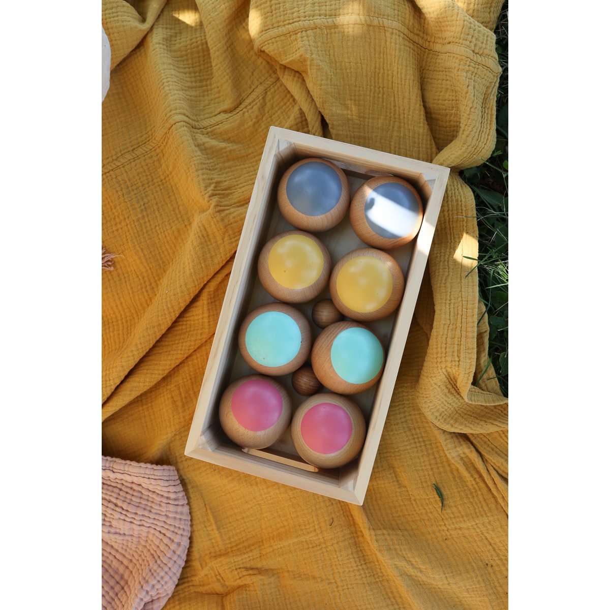 Dit klassieke Jeu de Boules spel is gemaakt van verantwoord hout en is verpakt in een handige opbergkist. Een ideaal spel voor de hele famillie. Het bevorderd hand, oog coördinatie en stimuleert kleurherkenning bij jonge kinderen.