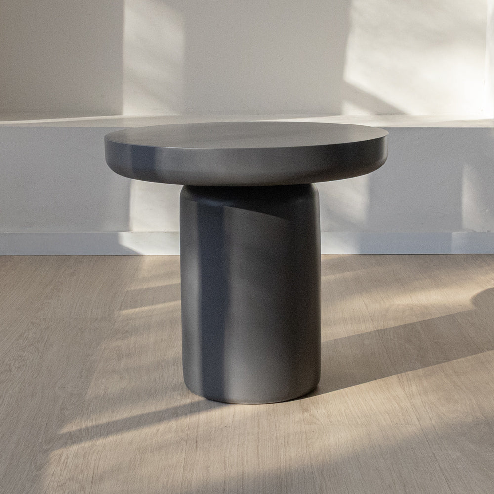 - Grijze ronde bijzettafel (Ø45 cm) – Een modern statement met een solide uitstraling en strakke afwerking.