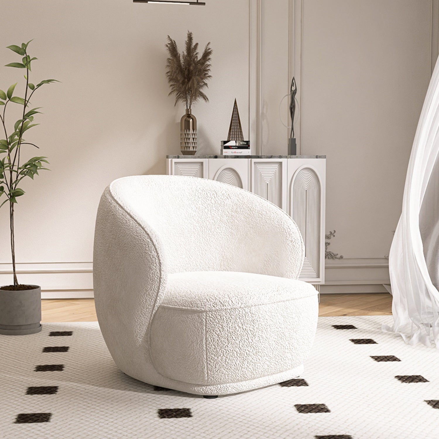 Deze moderne witte stoffen loungestoel biedt ultiem comfort in een stijlvol design. De zachte bekleding en het ergonomische ontwerp zorgen voor een ontspannen zitervaring.